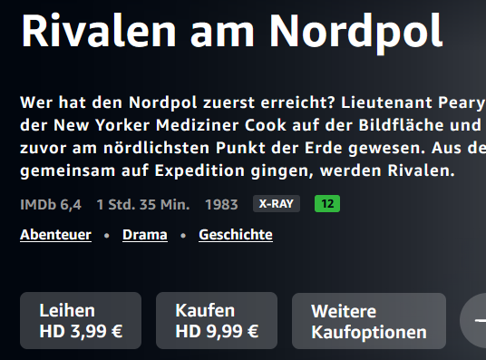 Habe in der Waiputhek den Film: Rivalen am Nordpol angeschaut. Dieser Film ist auch bei YouTube vorhanden. Sowohl in der Waiputhek als auch bei YouTube ist die Bildqualität schauderhaft, obwohl bei der Waiputhek HD angezeigt wird. Da bekommt man Augenkrebs.