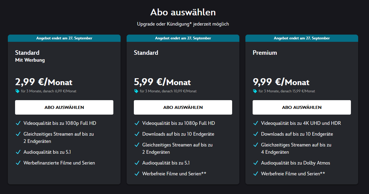 - Disney+ Standarad mit Werbung: 6,99 €/Monat