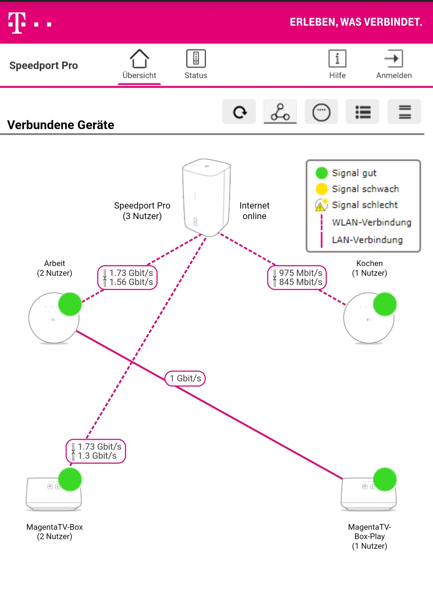Läuft immernoch perfekt auch (noch) keine 10Mbit Probleme. Die MagentaTV Box und eine Play ist an einem Netgear Prosafe GS108Ev2 mit anderen Geräten (Computer, WLAN, Repeater 1750E, Fernseher, Drucker usw…) die andere Play Box ist an einem anderen LAN Port der Fritzbox 7590 aber auch über einen Netgear ProSafe GS108Ev2 und auch keine Probleme. Keine aussetzer, Fernbedienung läuft gut.