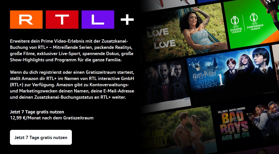 RTL+ jetzt auch als Prime Video Channel.