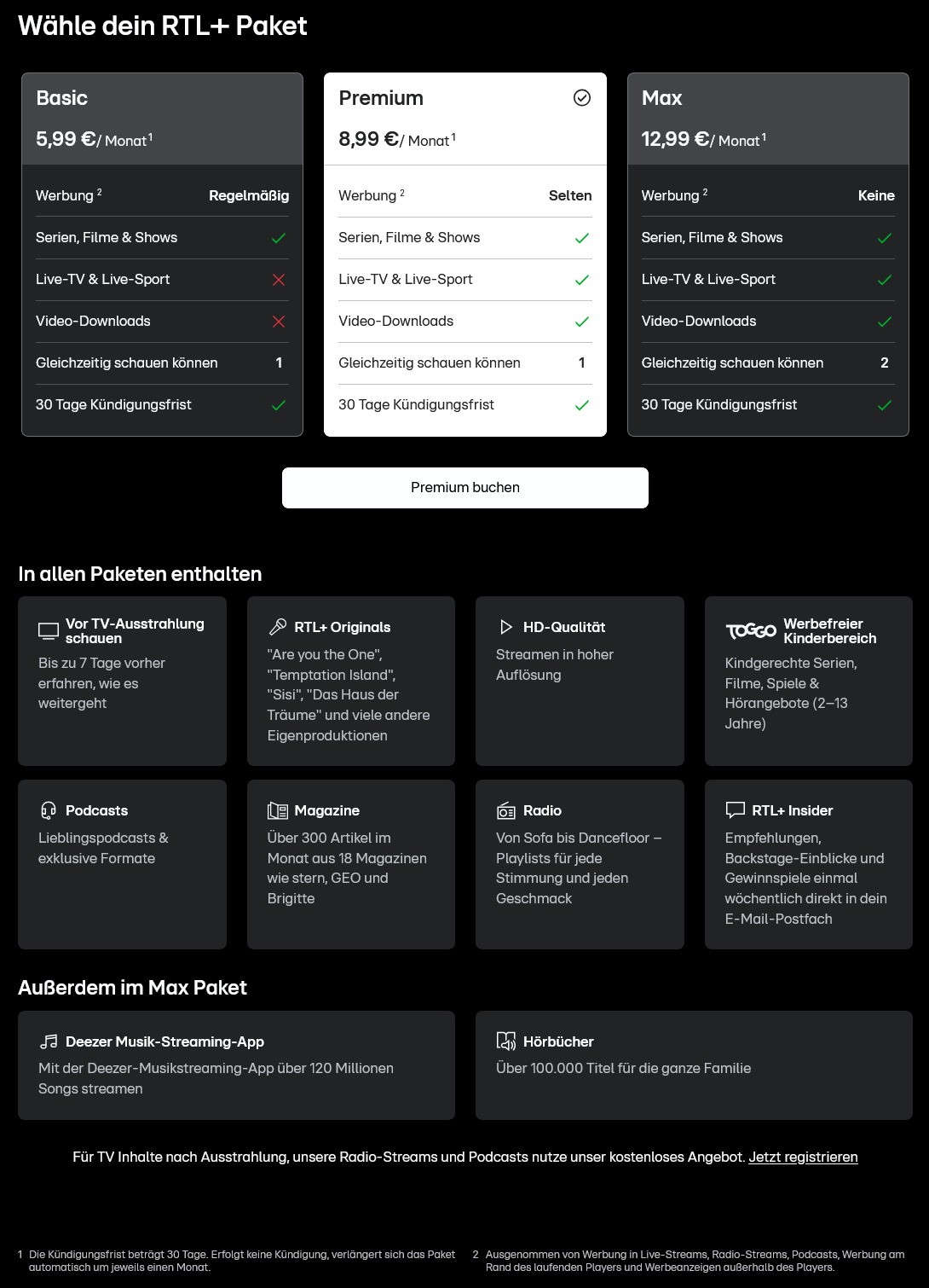 Hier mal die derzeitige Paket- und Preisübersicht von RTL+.