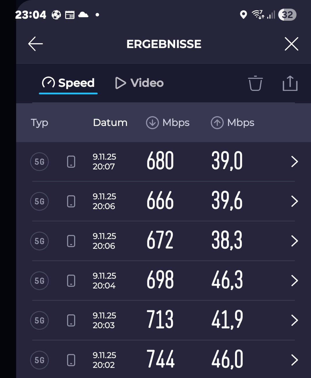 Ps. Davor hatte ich nen Vodafone LZ Vertrag mit 5G bis 1000MB und gleiche Telefon, gleiche Gegend wenn da mal 60MB im Download und 15 im Upload waren…….